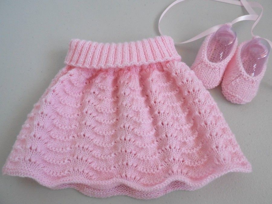 · Tricot bebe, jupe rose, bb fille, layette fait main, laine